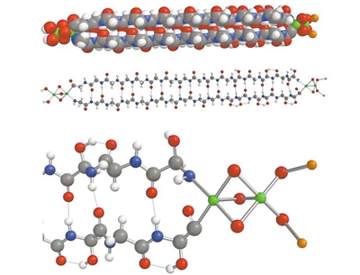 科學(xué)家在隕石中發(fā)現(xiàn)的血石蛋白分子的模型。圖片來源:物理學(xué)家組織網(wǎng)