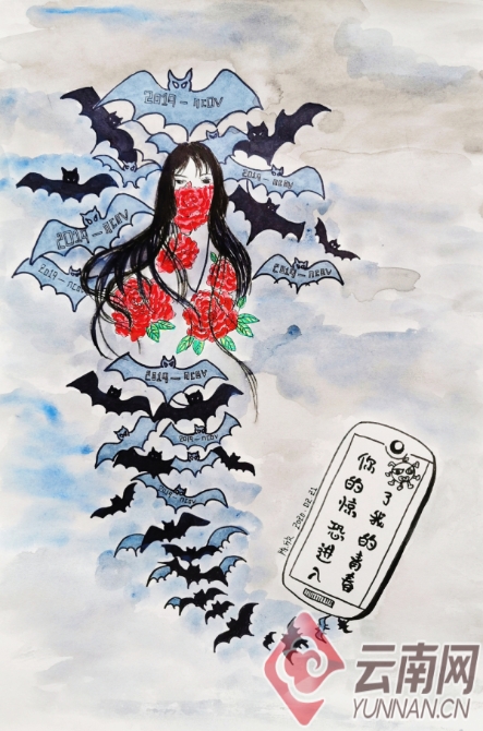林職院教師繪畫原創(chuàng)作品 當青春撞上新型冠狀病毒 供圖