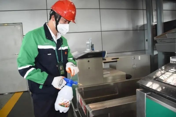 實施“一航班一消毒”,在每一架航班保障結(jié)束后,會立即對廊橋活動端地面、門把手以及固定端地面、扶手、電梯等設(shè)備設(shè)施進(jìn)行全面消毒。