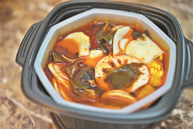 “那次我先放發(fā)熱包,后加水,它反應很快,蒸汽不斷往上冒出。我急忙把盛菜的塑料架架上去,一緊張,架子沒放好,有一部分插入到下層的水里,石灰水混進了食物。我的手還被蒸汽燙了一下。”伍女士回憶起第一次吃自熱火鍋時的“翻車現(xiàn)場”,自熱菜混入了石灰水,只好整盒丟掉。