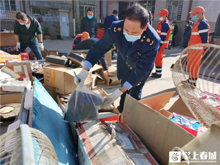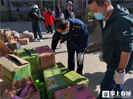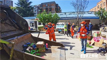 銷毀現(xiàn)場,工作人員們將一箱箱、一件件假冒偽劣商品搬上垃圾清運車壓縮打包送往西山區(qū)城市生活垃圾焚燒發(fā)電廠集中焚燒,其中,藥品類由指定回收機構(gòu)進行銷毀。