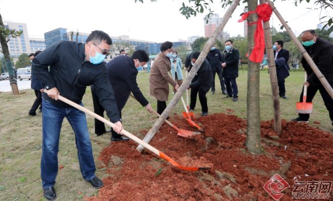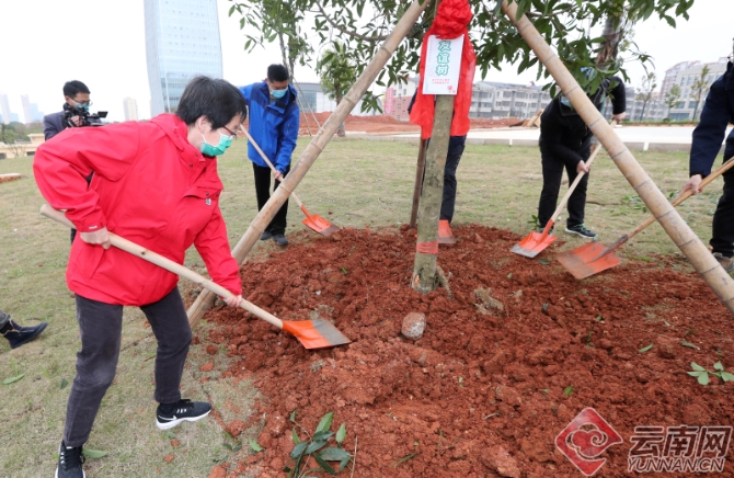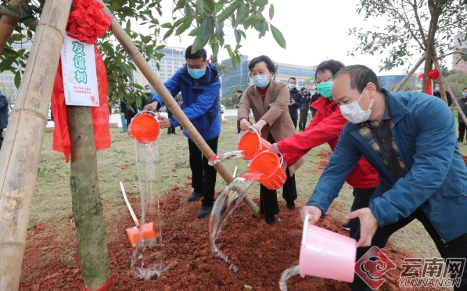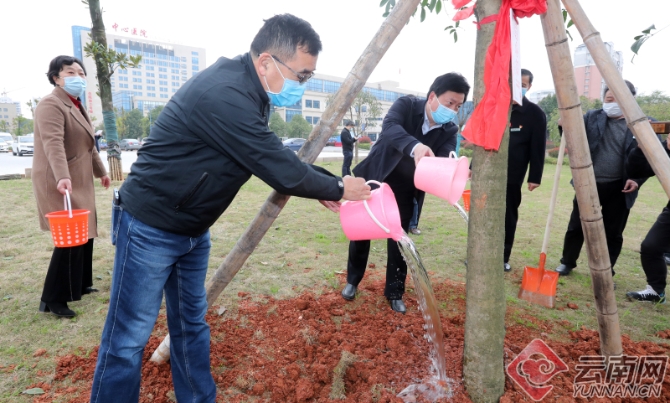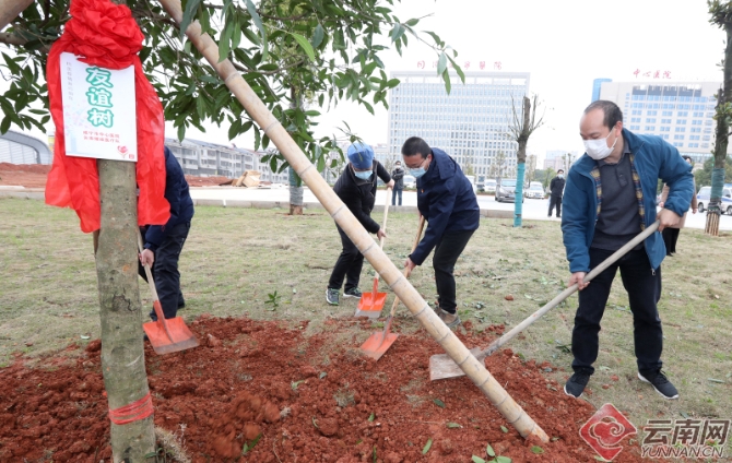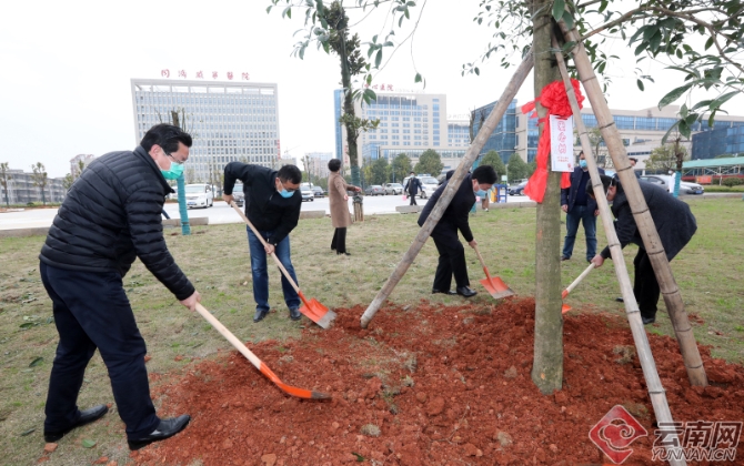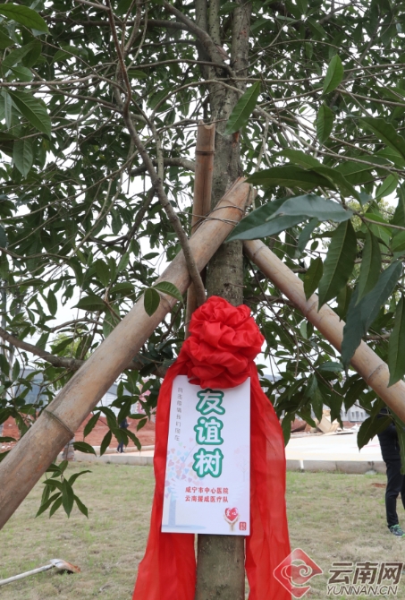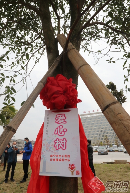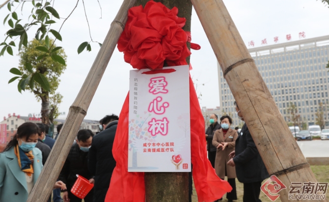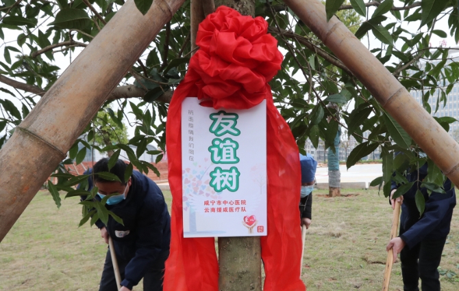 云南醫(yī)療隊隊員和咸寧中心醫(yī)院醫(yī)護人員共同種下“愛心樹”和“友誼樹”