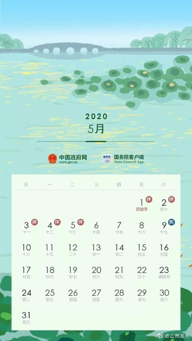 昆明信息港訊 機(jī)器人小明 2020年清明節(jié)、勞動(dòng)節(jié)、端午節(jié)、國(guó)慶節(jié)和中秋節(jié)放假調(diào)休日期的具體安排通知如下。