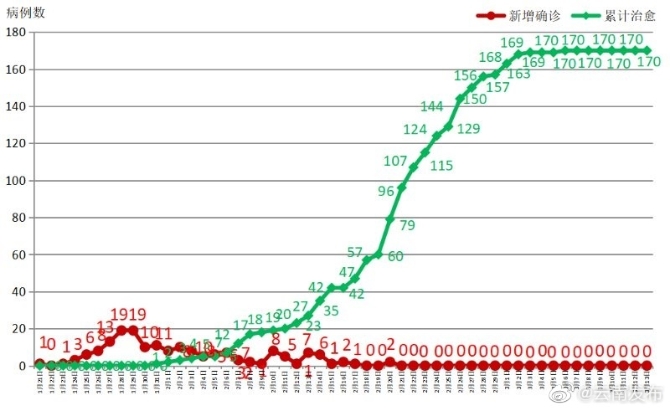 昆明信息港訊 機器人小明 #疫情最新情況#【3月13日12時至24時,云南無新增新型冠狀病毒肺炎確診病例】3月13日12時至24時,無新增確診病例。截至3月13日24時,全省累計確診病例174例,死亡2例,現(xiàn)有確診病例2例,無重癥、危重癥病例。