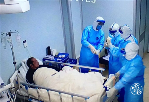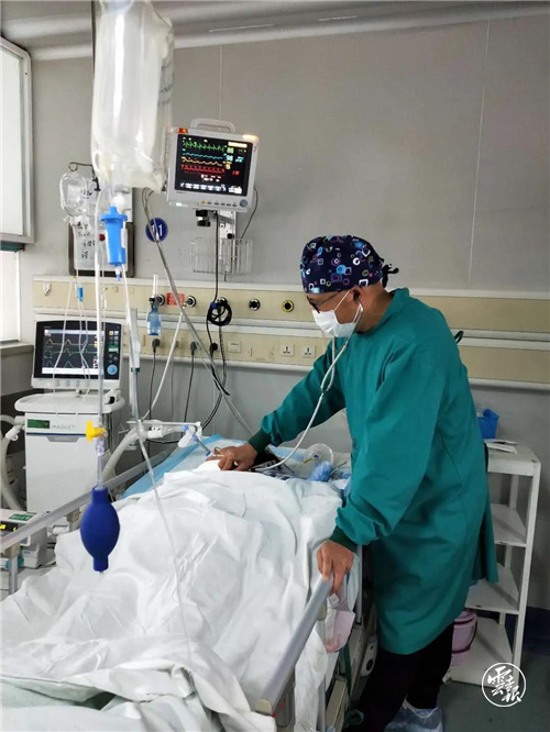 “那是一場生死搏斗?!北I绞腥嗣襻t(yī)院重癥醫(yī)學(xué)科副主任、主任醫(yī)師李建春至今回想起來,依然感到緊張。2月2日凌晨,一名65歲的患者因病情加重轉(zhuǎn)入重癥醫(yī)學(xué)科負(fù)壓病房實施搶救,那是保山市唯一的危重患者,需要盡快插管并上呼吸機實施生命支持。雖然這樣的手術(shù)李建春已操作了無數(shù)次,但像當(dāng)晚那樣穿著厚厚的防護服、戴著5層手套、戴著口罩和護目鏡再加上一個防護面罩,在幾乎沒有觸感的情況下實施操作,還是第一次。“消毒、給藥、鎮(zhèn)痛、插管、上呼吸機、調(diào)整參數(shù)后持續(xù)觀察。”在兩位同事的配合下,手術(shù)在全神貫注中順利完成,患者呼吸逐漸平緩,大家終于松了一口氣。