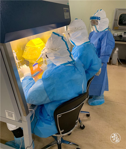隔離衣、N95口罩、防護服、靴套、護目鏡……全套裝備穿戴完畢,昆明市疾病預(yù)防控制中心微生物檢驗科人員個個變身白色鎧甲戰(zhàn)士,準(zhǔn)備進行新冠病毒核酸檢測。春節(jié)后很長一段時間,昆明市疾病預(yù)防控制中心微生物檢驗科科長侯敏每天只休息兩三個小時,時刻與“病毒”交鋒。他把自己的電話當(dāng)作采樣和收樣工作電話對外公布,獨自承擔(dān)深夜的樣品接收任務(wù),盡量等到凌晨3點以后才休息。從1月17日檢驗第一份疑似樣本開始,截至目前,昆明市疾控中心檢測了6000余份樣本,做到零差錯。