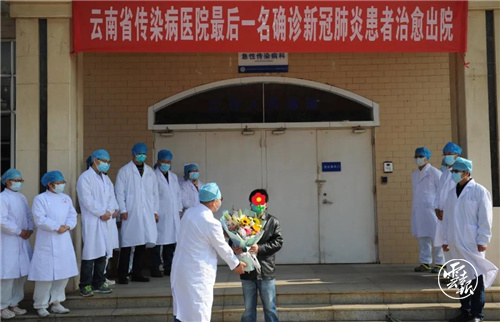 “謝謝你們!是你們賦予我的親人第二次生命,你們是最勇敢的戰(zhàn)士?!?月2日上午,昆明市第三人民醫(yī)院實現(xiàn)確診病例“清零”,長坡院區(qū)門診大樓前,治愈出院的8歲男孩張翰(化名)及其家人向醫(yī)護人員一次次地深深鞠躬、真誠致謝,在場人員無不為之動容。作為昆明市市級定點收治機構(gòu),該院建立預(yù)檢分診、發(fā)熱門診、留觀病區(qū)、隔離病區(qū)及醫(yī)學(xué)觀察區(qū)等全面的防控響應(yīng)體系。截至目前,醫(yī)院收治核酸檢測陽性患者39例,其中,36名為確診患者,確診病例收治人數(shù)位于全省第一,3名無癥狀感染者,均已全部治愈出院。
