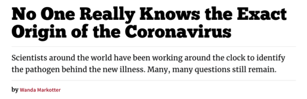 文章指出,世界各地的科學(xué)家一直在努力尋找新冠病毒的起源,目前存在許多問(wèn)題尚未解決,最關(guān)鍵的是目前仍沒(méi)有掌握關(guān)于病因來(lái)源的明確數(shù)據(jù)。