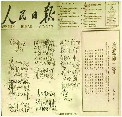 1958年6月30日,《人民日報》以《第一面紅旗——記江西余江縣根本消滅血吸蟲病的經(jīng)過》為題,報道了當?shù)叵麥缪x病的消息。此時65歲的毛澤東,得知這一消息后,激動不已,欣然命筆,寫成了不朽的詩篇《送瘟神二首》。