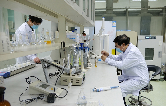 3月2日,軍事醫(yī)學(xué)研究院重大疫情應(yīng)急防控藥物研究室,科研人員正在檢測藥物的穩(wěn)定性和有效性。
