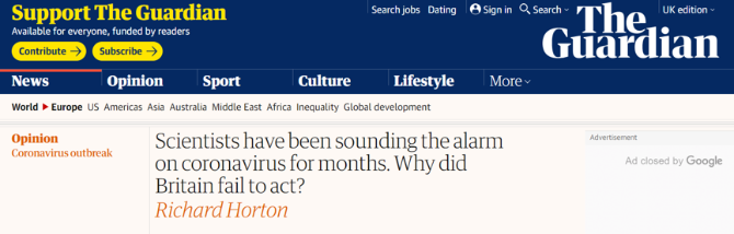 《柳葉刀》的主編理查德·霍頓18日在《衛(wèi)報(bào)》發(fā)表文章,感激中國(guó)科學(xué)家預(yù)警,痛批英國(guó)錯(cuò)失控制新冠肺炎疫情的良機(jī)。他說,疫情發(fā)生后,中國(guó)科學(xué)家1月24日?qǐng)?bào)告了第一例新冠肺炎病亡案例,并警示了疫情的嚴(yán)重性。然而英國(guó)忽視了這些信號(hào),浪費(fèi)了寶貴的時(shí)間,也失去了控制疫情的最佳時(shí)機(jī)。