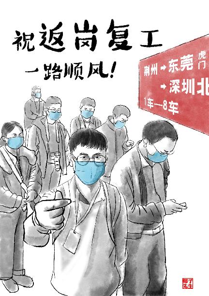 登上返崗專列,回到親切熟悉的工作崗位,趁著春光,只爭(zhēng)朝夕干起來(lái)!(文:董璐 手繪:趙凱)