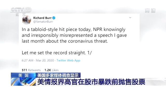 在美國(guó)全國(guó)公共廣播電臺(tái)曝光這段錄音以后,美國(guó)多家媒體進(jìn)一步調(diào)查發(fā)現(xiàn),除了在午餐會(huì)上“秘密”預(yù)警贊助商外,伯爾參議員在股市暴跌前幾周拋售股票。
