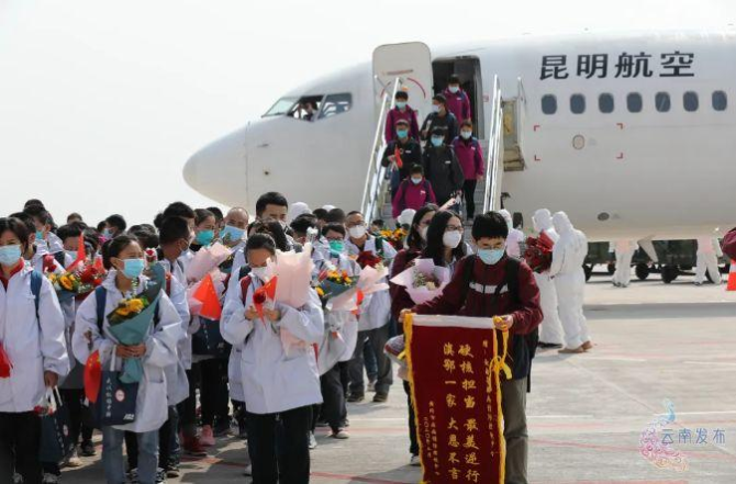 3月18日,云南援助湖北醫(yī)療隊(duì)首批返程隊(duì)員從武漢啟程返回云南。