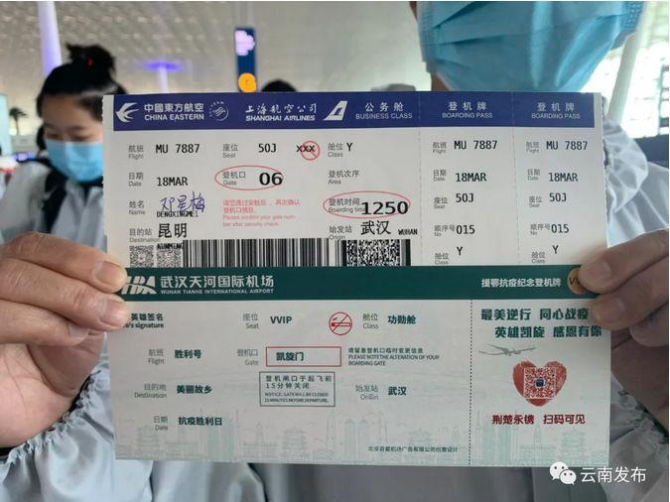 3月18日,天河機(jī)場為返程的醫(yī)療隊(duì)隊(duì)員們精心準(zhǔn)備了“限量版”紀(jì)念機(jī)票,這張機(jī)票是他們這趟不平凡旅程的見證。