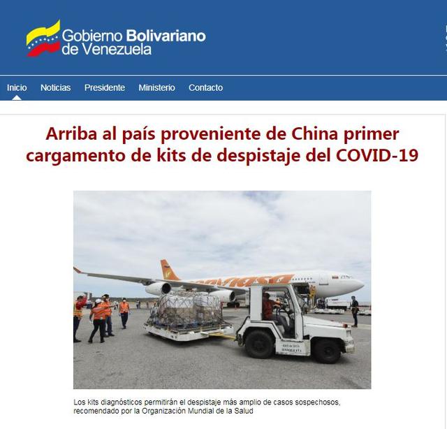 當?shù)貢r間3月19日,一批醫(yī)療援助物資從中國運抵委內(nèi)瑞拉,其中包括4000套新冠病毒檢測試劑盒、防護服、手套等。