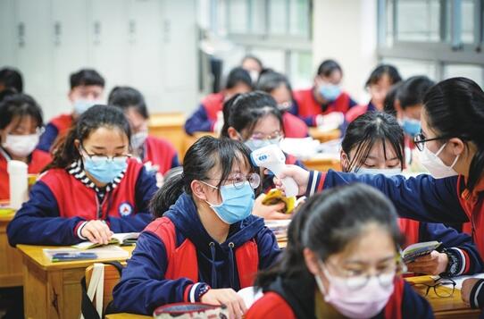 昨日,云南省高三年級、初三年級正式開學(xué)。闊別2個(gè)多月后,師生們重返校園。一大早,晚報(bào)記者兵分多路,到昆明多所中學(xué)探訪。各校秩序井然,各項(xiàng)工作有條不紊。老師都早早地來到學(xué)校,在校門口為學(xué)生一一測體溫并進(jìn)行登記。在校園里,學(xué)生們均戴著口罩上課。按照省教育廳安排,開學(xué)第一天,各校還以《新冠肺炎及其自我防護(hù)》為主題進(jìn)行了開學(xué)第一課,并開展了疫情防控應(yīng)急演練。