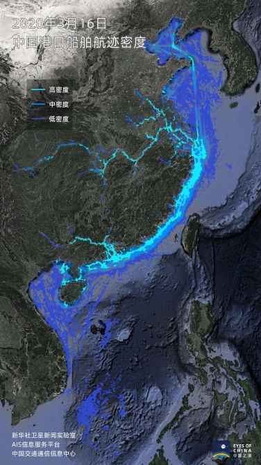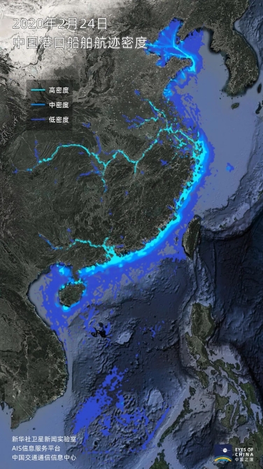 根據(jù)通信衛(wèi)星等方式獲得的船舶信息, 中國沿海及內(nèi)河的船舶活躍度正在快速提升。