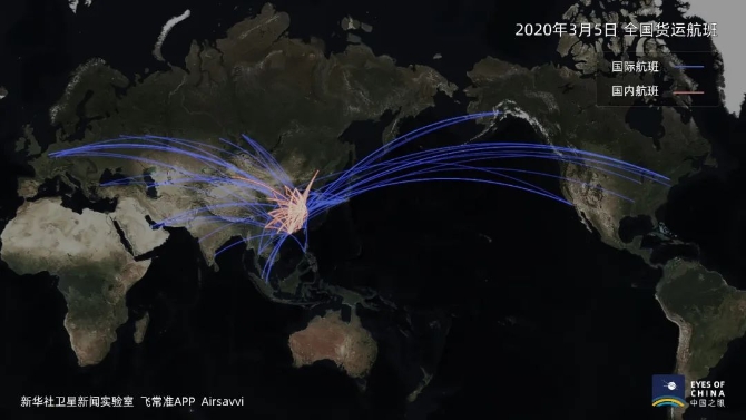 在空中,3月19日中國直航世界各地的貨運航班數(shù)量是2月1日的3.8倍,更多更快地運送包括口罩、醫(yī)療用品在內(nèi)的各類物資。