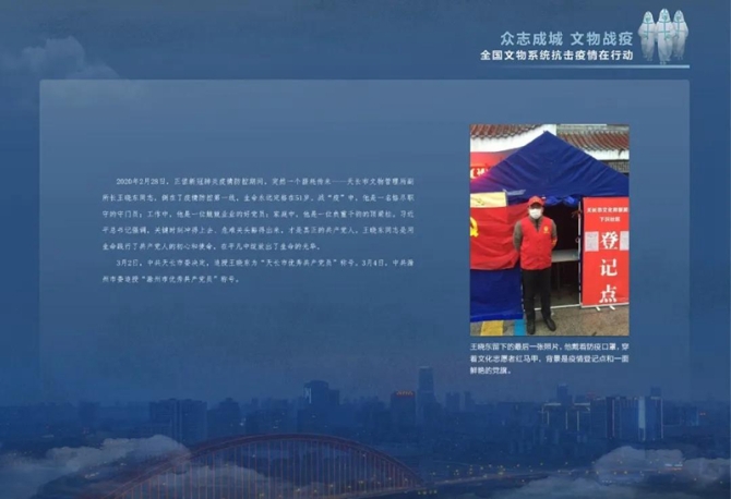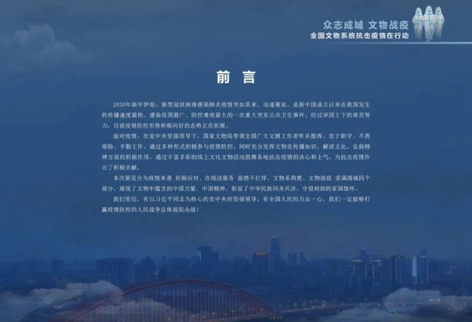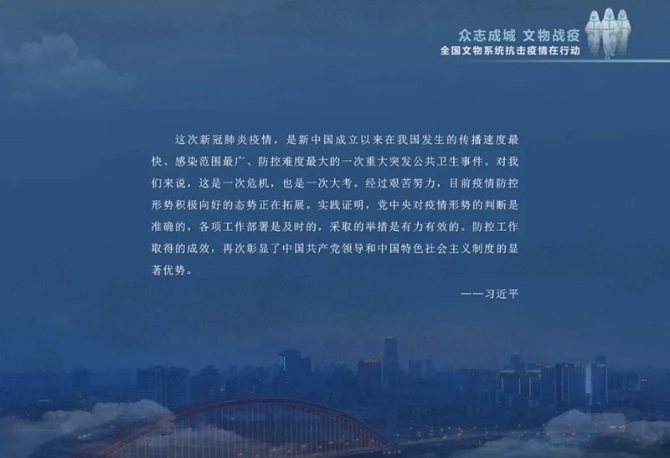 文物系統(tǒng)文能保文物,武能戰(zhàn)疫情,線上送展覽,線下做志愿,上下一心,攜手抗“疫”,為戰(zhàn)勝疫情貢獻(xiàn)著自己的力量。