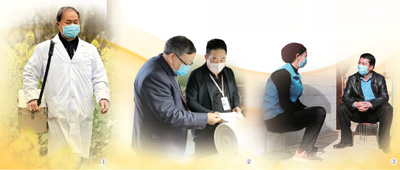 圖①:湖南省資興市人大代表歐光明進村入戶宣傳防疫知識。