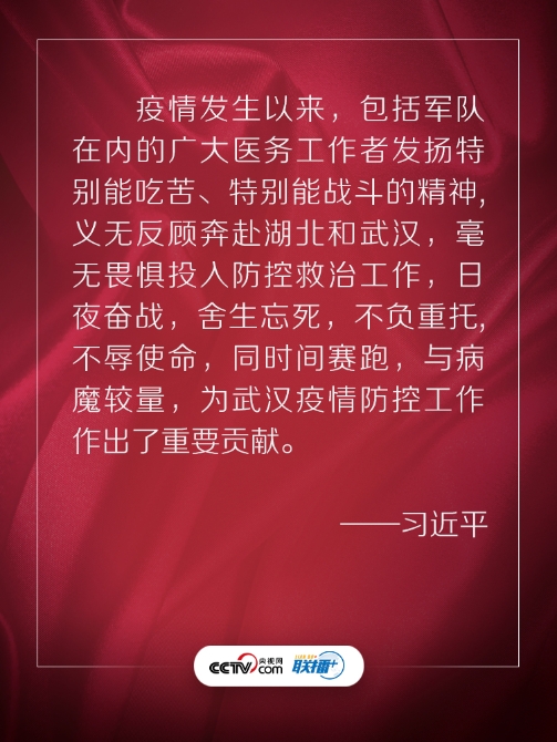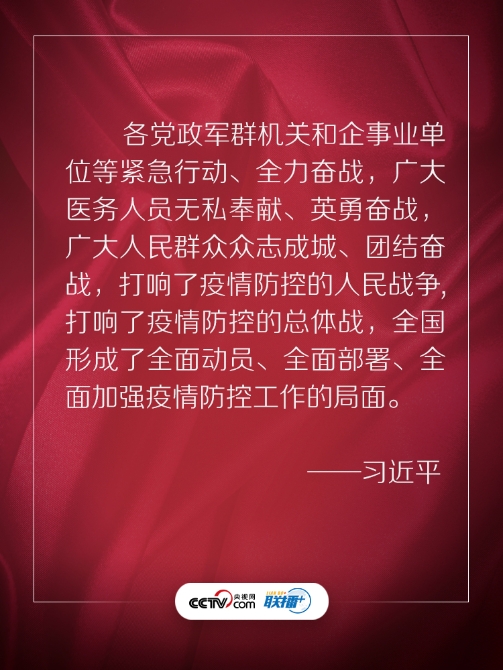 新冠肺炎疫情發(fā)生以來(lái),習(xí)近平密集部署疫情防控工作,人民是他每次講話、部署中的高頻詞。習(xí)近平也多次點(diǎn)贊人民,表達(dá)“緊緊依靠人民群眾堅(jiān)決打贏疫情防控阻擊戰(zhàn)”的信心與決心。央視網(wǎng)《聯(lián)播+》為您梳理這些溫暖話語(yǔ),一起感受人民的力量。
