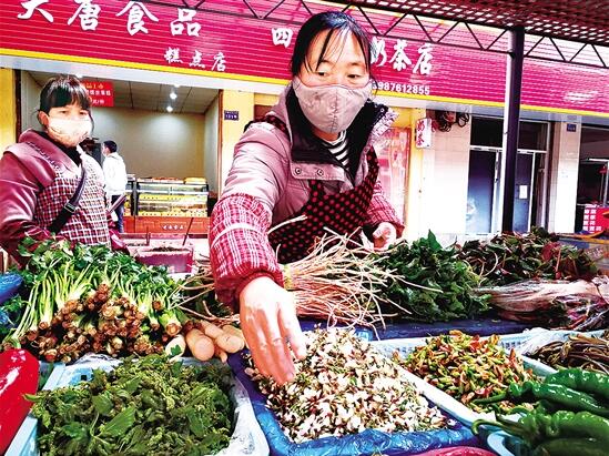 賣(mài)野菜的李桃花也經(jīng)常采野菜。記者蔣瓊波/攝