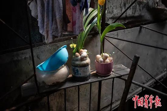 3月24日,武漢市大董社區(qū)一小區(qū)樓梯拐角處,居民養(yǎng)的花草。中青報(bào)·中青網(wǎng)記者 李雋輝/攝