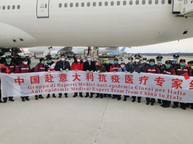 除了給物資,中國還向伊朗、伊拉克、意大利、塞爾維亞和柬埔寨5個國家派出7批醫(yī)療組,正在籌備向其他受疫情影響的國家派遣專家組。