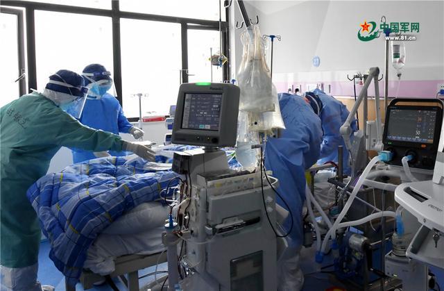 醫(yī)護(hù)人員正在對(duì)患者使用的人工膜肺 (ECMO)進(jìn)行調(diào)試。解放軍報(bào)記者 王傳順 攝