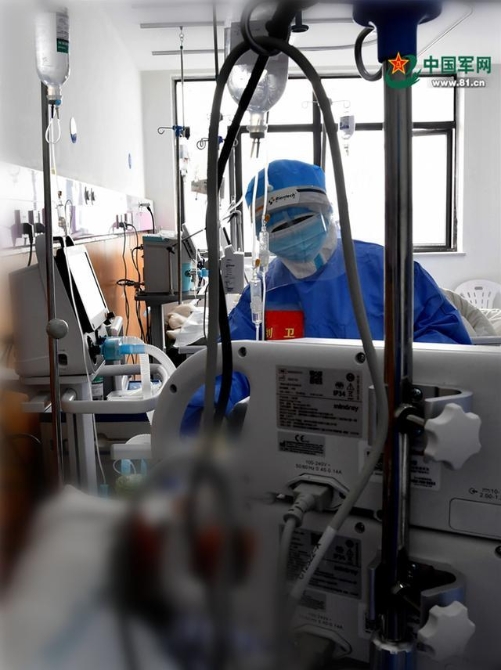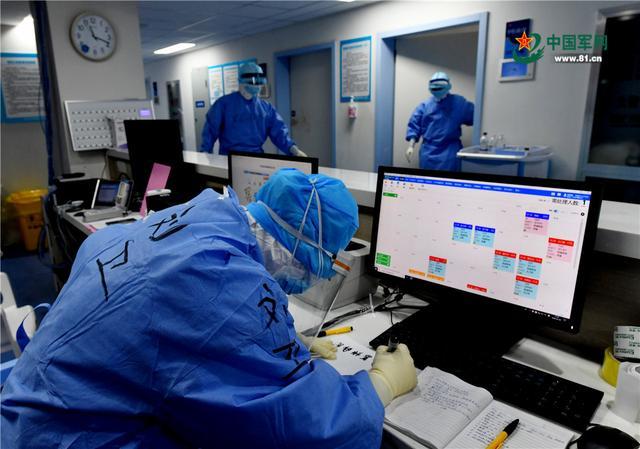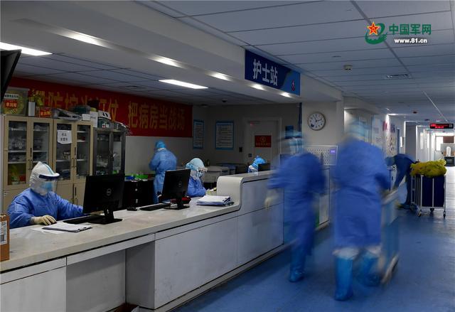 病區(qū)里忙碌的身影,詮釋了醫(yī)護(hù)人員勇挑重?fù)?dān)、敢打硬戰(zhàn)和不怕疲勞連續(xù)作戰(zhàn)的優(yōu)良作風(fēng)。解放軍報(bào)記者 王傳順 攝