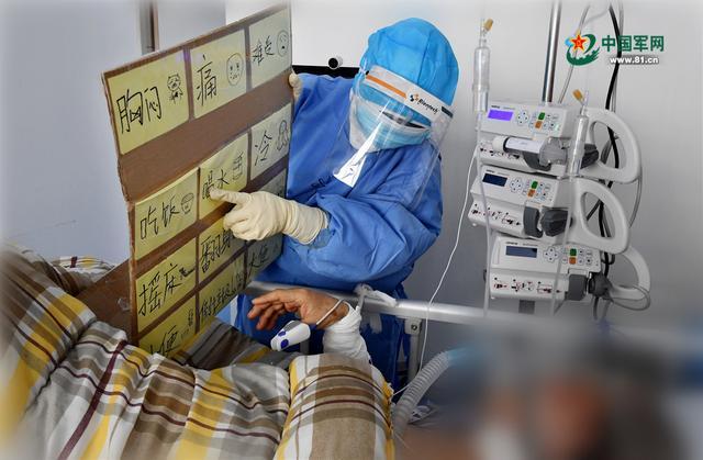 醫(yī)護(hù)人員自制提示板,為重癥患者提供護(hù)理服務(wù)。解放軍報(bào)記者 王傳順 攝