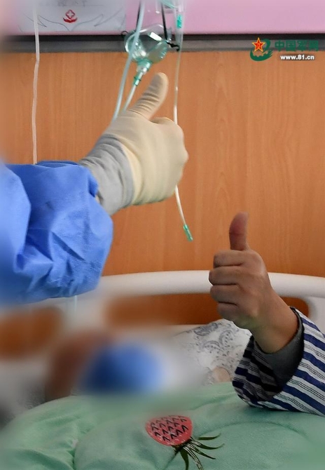 互相鼓勵(lì)點(diǎn)贊,是在重癥室看到最多的場(chǎng)景。解放軍報(bào)記者 王傳順 攝