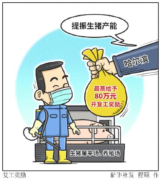 新華社哈爾濱3月28日電 記者強(qiáng)勇 記者從哈爾濱市政府了解到,為提振疫情影響下的生豬產(chǎn)能,今年哈爾濱市將完成360萬(wàn)頭生豬養(yǎng)殖任務(wù),并對(duì)日均屠宰量500頭以上的生豬定點(diǎn)屠宰廠給予最高80萬(wàn)元一次性開復(fù)工獎(jiǎng)勵(lì)。