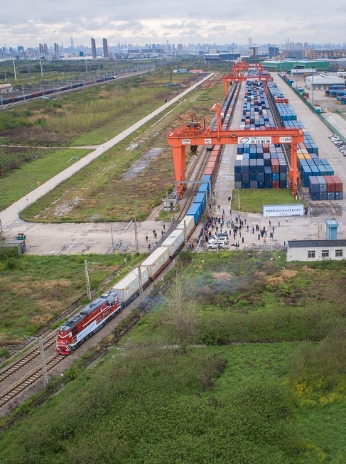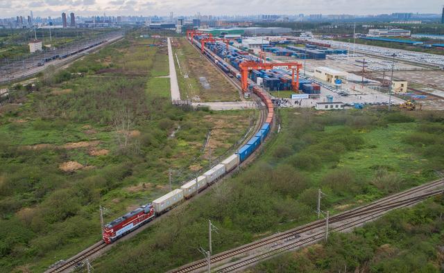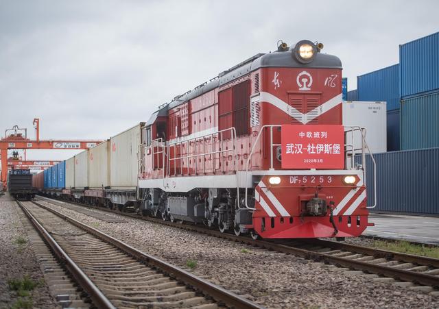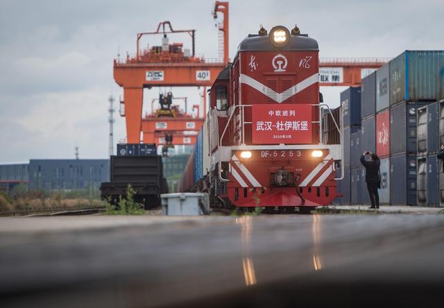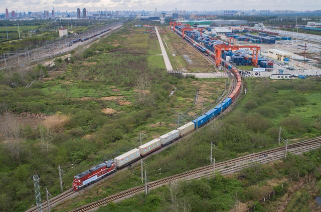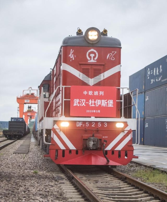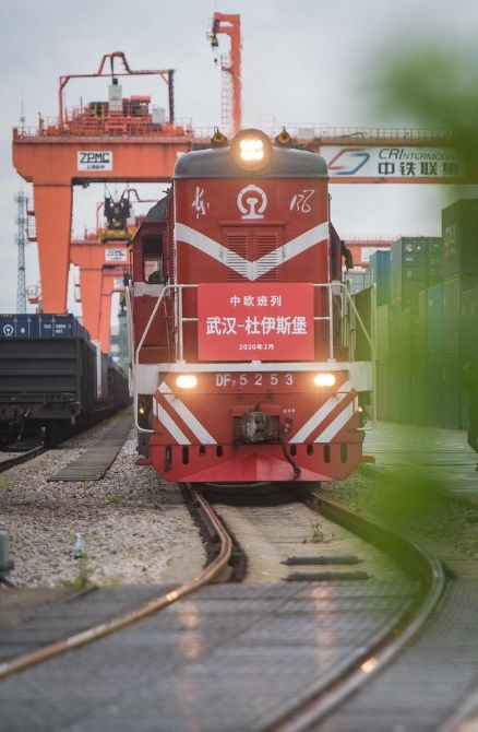 ↑3月28日,開(kāi)往德國(guó)杜伊斯堡的中歐(武漢)班列從中鐵聯(lián)集武漢中心站駛出。