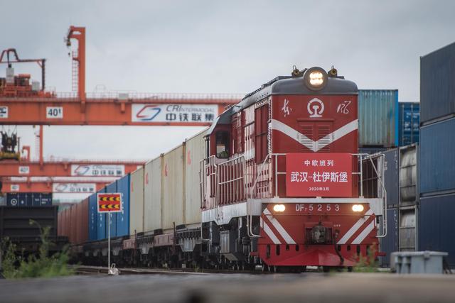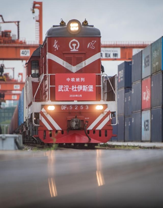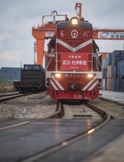 ↑3月28日,開(kāi)往德國(guó)杜伊斯堡的中歐(武漢)班列從中鐵聯(lián)集武漢中心站駛出。 3月28日上午10點(diǎn),中歐班列(武漢)X8015/6次運(yùn)載50只集裝箱從中鐵聯(lián)集武漢中心站始發(fā)。班列將從阿拉山口出境,預(yù)計(jì)15天后抵達(dá)德國(guó)杜伊斯堡。這是自疫情防控以來(lái),從武漢開(kāi)出的首趟中歐班列,標(biāo)志著中歐班列(武漢)恢復(fù)常態(tài)化運(yùn)營(yíng)。 新華社記者 肖藝九 攝影報(bào)道