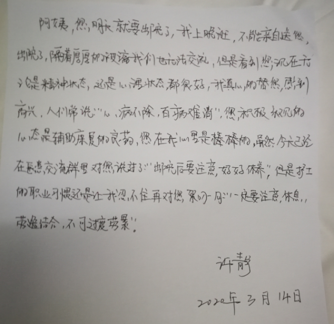 寫信的是火神山醫(yī)院護士許靜