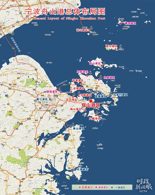 寧波舟山港由北侖、洋山、六橫、衢山、穿山、金塘、大榭、岑港、梅山等19個(gè)港區(qū)組成。這是寧波舟山港總體布局圖。(來源于寧波舟山港股份有限公司官網(wǎng))