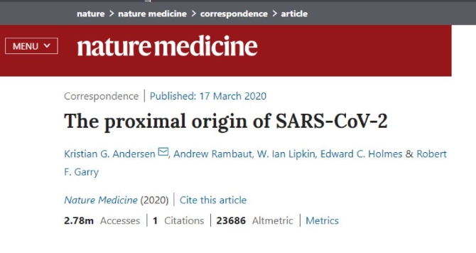 根據(jù)科學(xué)雜志《自然醫(yī)學(xué)》發(fā)表的證據(jù)分析表明,新冠病毒“不是在實(shí)驗(yàn)室中構(gòu)建的,也不是有目的性的人為操控的病毒”。