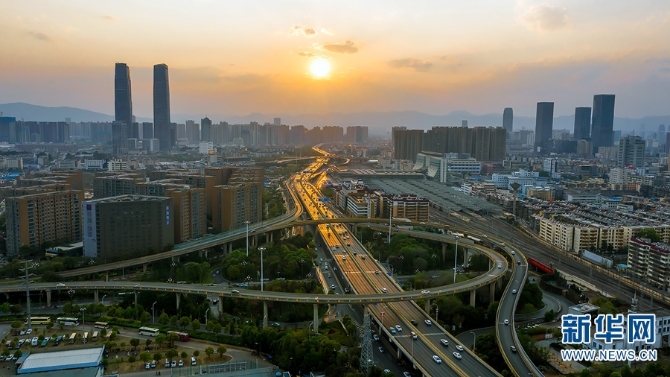 3月24日,航拍視角下的昆明福德立交橋。新華網(wǎng) 陳暢/攝