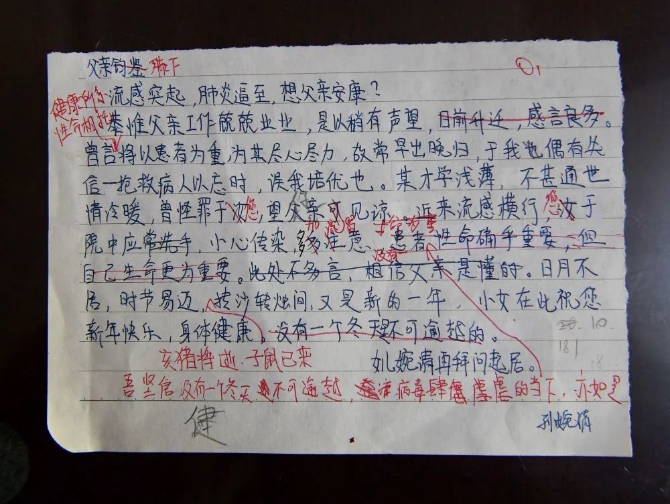 孫婉清寫給父親的家書草稿(1月29日攝)。新華社記者 李賀 攝