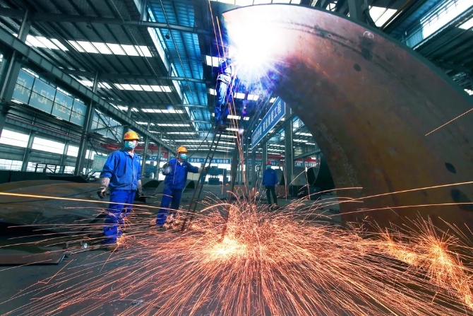 武漢一冶鋼結(jié)構(gòu)有限責(zé)任公司壓力容器分公司正在有序復(fù)工生產(chǎn)。圖為2020年3月21日,工人們進(jìn)行加工作業(yè)。 光明網(wǎng)記者 季春紅/攝