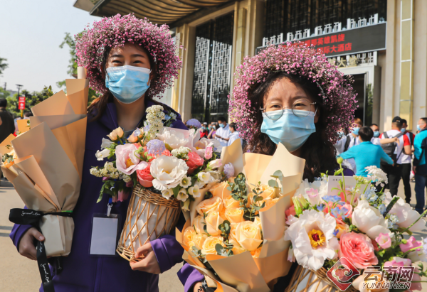 車輛行駛在北市區(qū),車窗外,戶外電子屏循環(huán)展示著云南省支援湖北醫(yī)療隊(duì)隊(duì)員的照片,路邊的鮮花開得正艷?!翱粗ッ鞯慕值捞H切了,想到處走走,呼吸呼吸昆明的空氣?!币卉嚾擞姓f有笑。