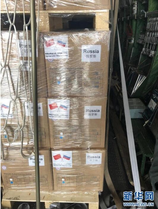 莫斯科時間4月2日4時40分,運載援助貨物的俄方貨機抵達莫斯科,俄工貿(mào)部代表俄政府接收這批物資并送往俄國家外科醫(yī)療中心。據(jù)中國駐俄羅斯大使館消息,這批物資總重約25.5噸,其中包括醫(yī)用口罩、防護服、外科手套、體溫計、鞋套等。物資包裝箱上用中文和俄文寫著“病毒必將被擊敗,勝利屬于我們!”的標語。
