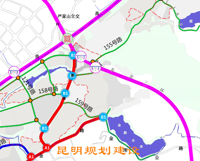 昆明信息港訊(昆明日?qǐng)?bào) 記者吳勁松)4月3日,盤龍區(qū)自然資源局發(fā)布《昆明市盤龍區(qū)青龍山片區(qū)(金殿分區(qū))控制性詳細(xì)規(guī)劃調(diào)整批前公示》。在公示的“道路交通規(guī)劃圖”中,標(biāo)注了東北三環(huán)道路的線形。道路標(biāo)識(shí)為快速路,繞過金殿水庫(kù),在嚴(yán)家山立交接入灃源路。市民一直關(guān)注的“三環(huán)閉合”走向似乎有了一絲明朗。
