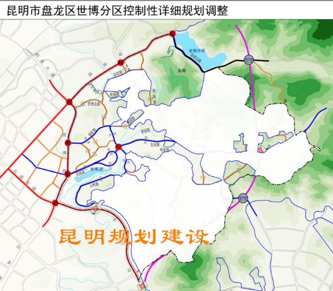 2020年4月1日,盤龍區(qū)自然資源局發(fā)布《昆明市盤龍區(qū)世博分區(qū)控制性詳細(xì)規(guī)劃調(diào)整批前公示》,雖未標(biāo)明道路名稱,但顯示了東北三環(huán)的線形雛形。而4月3日,盤龍區(qū)自然資源局發(fā)布的《昆明市盤龍區(qū)青龍山片區(qū)(金殿分區(qū))控制性詳細(xì)規(guī)劃調(diào)整批前公示》,則直接標(biāo)注了道路的相關(guān)信息,這條道路在兩個(gè)片區(qū)控規(guī)的調(diào)整公示圖中,“意外”露臉。