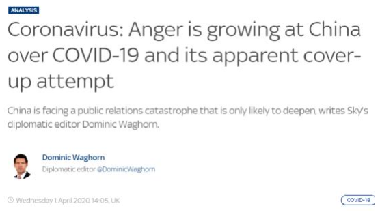 4月1日,英國《每日電訊報》發(fā)表《新冠肺炎意味著我們要把中國作為敵人對待》的文章。該報首席外交專欄作家孔·昆庫林通過不實報道和無端指責(zé),歪曲、抹黑中國抗擊疫情的努力,甚至呼吁政府將中國列為威脅經(jīng)濟(jì)和人民健康的敵對國家。
