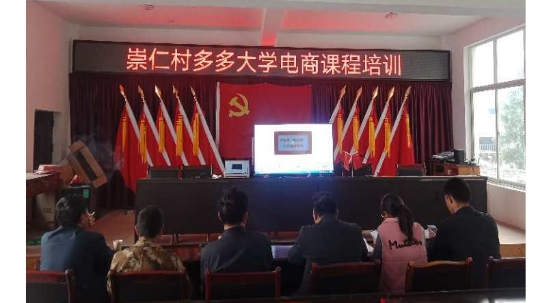 老窩鎮(zhèn)崇仁村學(xué)員在村委會(huì)辦公室學(xué)習(xí)直播課程。