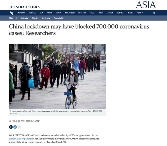 據(jù)法新社報(bào)道,由中國(guó)、美國(guó)和英國(guó)的研究人員3月31日發(fā)表在美國(guó)權(quán)威學(xué)術(shù)刊物《科學(xué)》雜志上的一篇論文稱,中國(guó)在新冠肺炎疫情暴發(fā)初期針對(duì)武漢采取的嚴(yán)厲控制措施,為全國(guó)其他城市準(zhǔn)備并實(shí)施各自的限制措施贏得了寶貴的時(shí)間,中國(guó)政府“封鎖”武漢的決定延遲了病毒的傳播并可能由此防止了70萬(wàn)例新冠肺炎確診病例的出現(xiàn)。