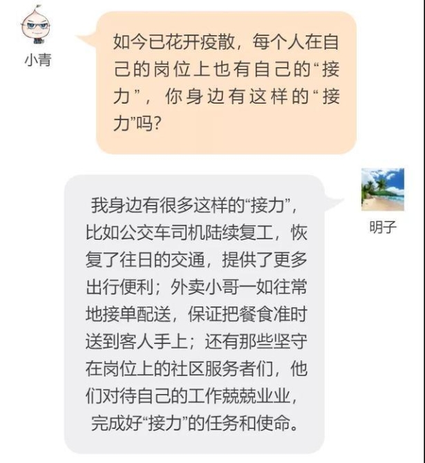 接力,是“讓我上”的果斷和勇敢。這幾天,湖北各地櫻花爛漫,城市正在恢復生機,荊楚大地,山河無恙。隨著櫻花雨落下,逆行的白衣天使們也正在陸續(xù)撤離。他們都曾經說著“讓我上”而走上不見硝煙的戰(zhàn)場,雖然我們無法一一記住他們的名字,甚至到他們離開的那一刻都沒能見過口罩下的每一張臉,但他們值得我們用最高的禮遇說一聲:謝謝,再見。